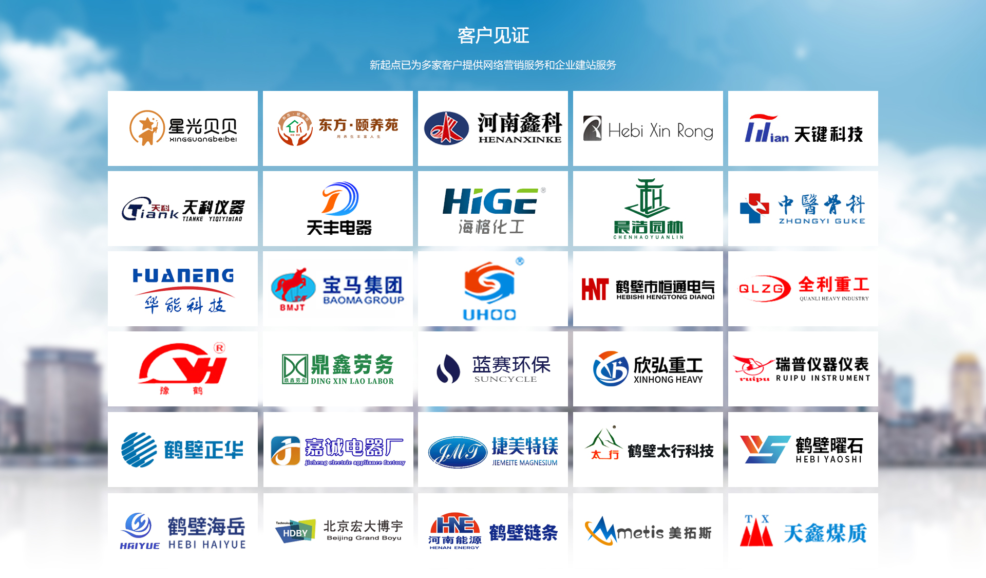 新起点公司10多年互联网经验先后为鹤壁元昊化工、河南天天集团、鹤壁宝马集团 、鹤壁蓝赛、鹤壁中医骨科医院、鹤壁恒力橡塑、鹤壁海格化工、河南鑫科、河南双民、鹤壁盛达、河南太行全利重工、鹤壁煤业机械等多家企业单位提供了网络服务,在增进客户利益的同时,公司也取得了不俗业绩。